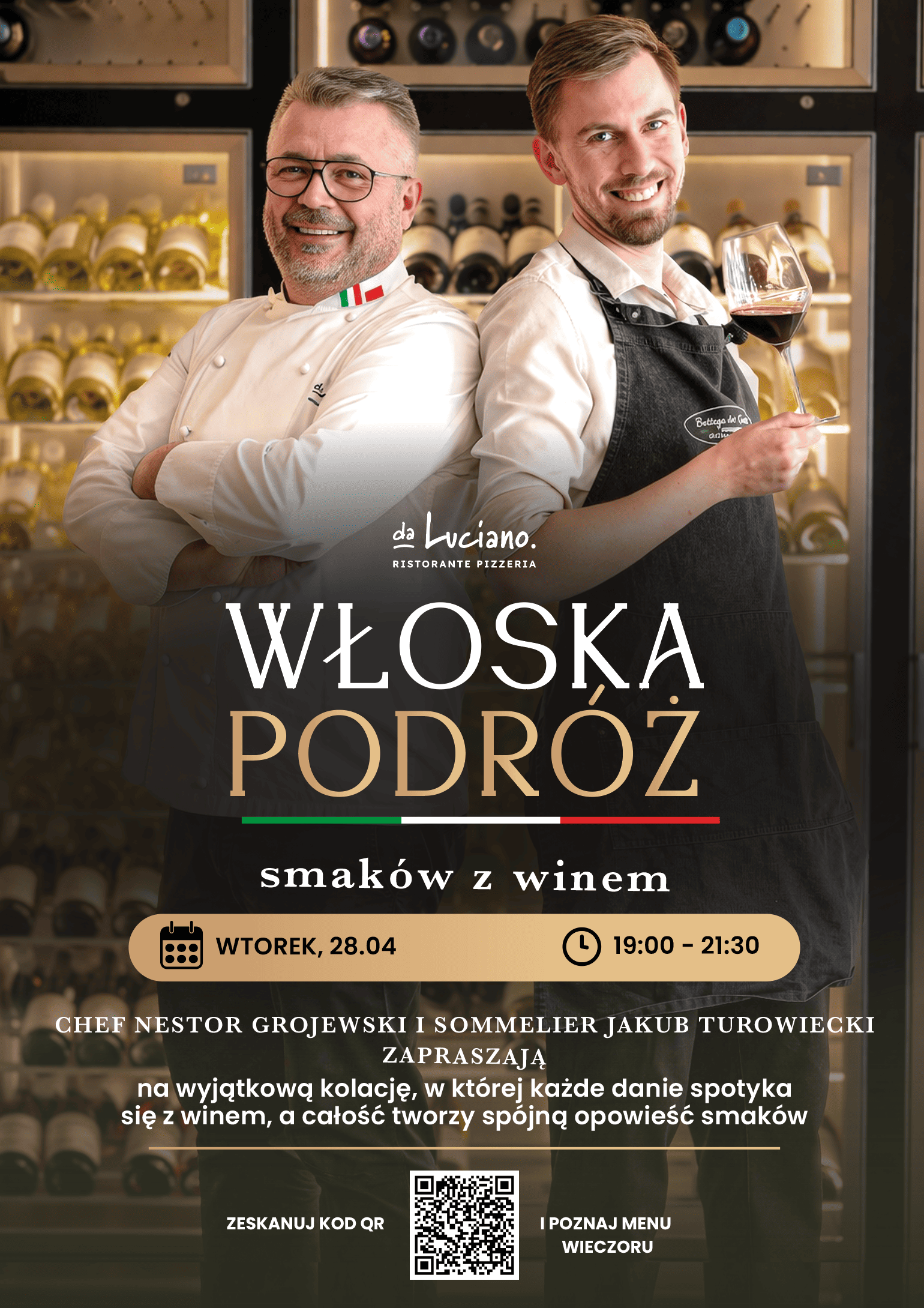 Czekają na Ciebie autorskie kolacje szefów kuchni, kultowe włoskie kompozycje przygotowywane z najwyższej jakości składników oraz wieczory z muzyką na żywo, które dopełnią smak wina i doskonałej kuchni.